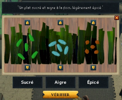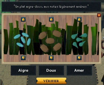 Il veut que vous préparez des salades mais que pour ca il aura besoin d`algues qui sont protégé par une méduse, alors il vous donnera un gramophone en esperant que ca peut l`amadouer. Allez proche de la méduse et faite jouer la musique l`ordre correct est 2,3,1. Après vous devrez preparez la salade pour ca faite juste suivre les instruction (parfois le dialogue du chef est mauvais alors il faut toujours se fié à l`interface).