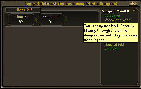 - Dat Jagex humor heeft was al langer bekend. Maar ook bij Dungeoneering hebben ze hun sporen achtergelaten, door af en toe, bij het voltooien van een floor, een grappig overzicht te noteren.