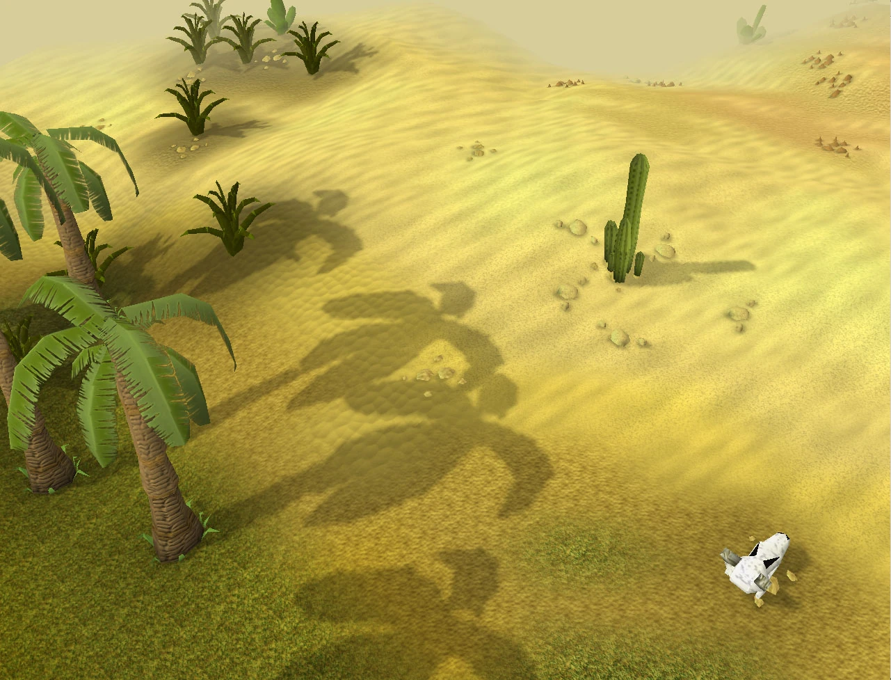 Ook zal in Gielinor een groot gebied bedolven zijn onder zand en een extreem hoog temperatuur hebben. Dit gebied heet de Kharidian Desert, en bestaat vrijwel uit alleen woestijn, hoewel er een rivier doorheen loopt en er zijn verschillende waterbronnen te vinden onder de grond. Sinds de god Wars is veel van de oostelijke woestijn ondergelopen met water. Aangezien de temperatuur in de woestijn zo extreem hoog is, kunnen spelers makkelijk dood gaan door de hitte. Een logische verklaring voor de hitte zal zijn dat de zon rechtstreeks gericht staat op Kharidian Desert, waardoor de zonnestralen gerichte door de atmosfeer komen, waardoor het meer warmte kan verspreiden.