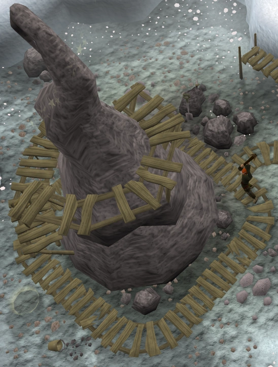 Bij al deze locaties staan mensen die je naar de mijn zullen teleporteren. Als je er heen wordt geteleporteerd, kom je in een grote mijn met vier gangen. Elke gang leidt naar een gesteente waar de essence uit kunt hakken met je pickaxe. Om de mijn te verlaten moet je simpelweg door de portal stappen die in de kamer zal zijn. Je komt dan weer terecht bij de persoon die je de mijn in teleporteerde.