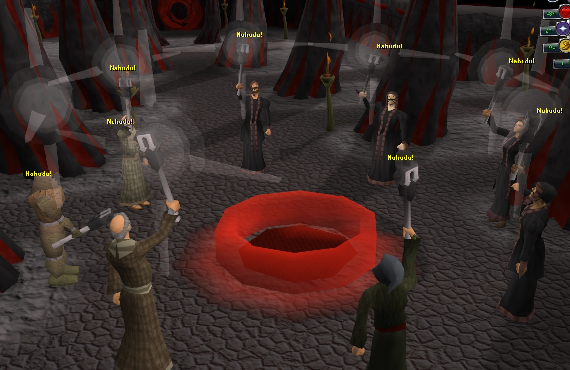 Agrith Naar is a demon, formerly trapped into the human form of Denath, who is the final boss of the Shadow of the Storm quest. He is described as the most powerful and prominent of the demons that cause natural disasters on Gielinor, and indeed he is able to control the weather and create potent thunder storms or sand twisters. His symbol is two arrows pointing downward, connected at the top, usually depicted in brown.
