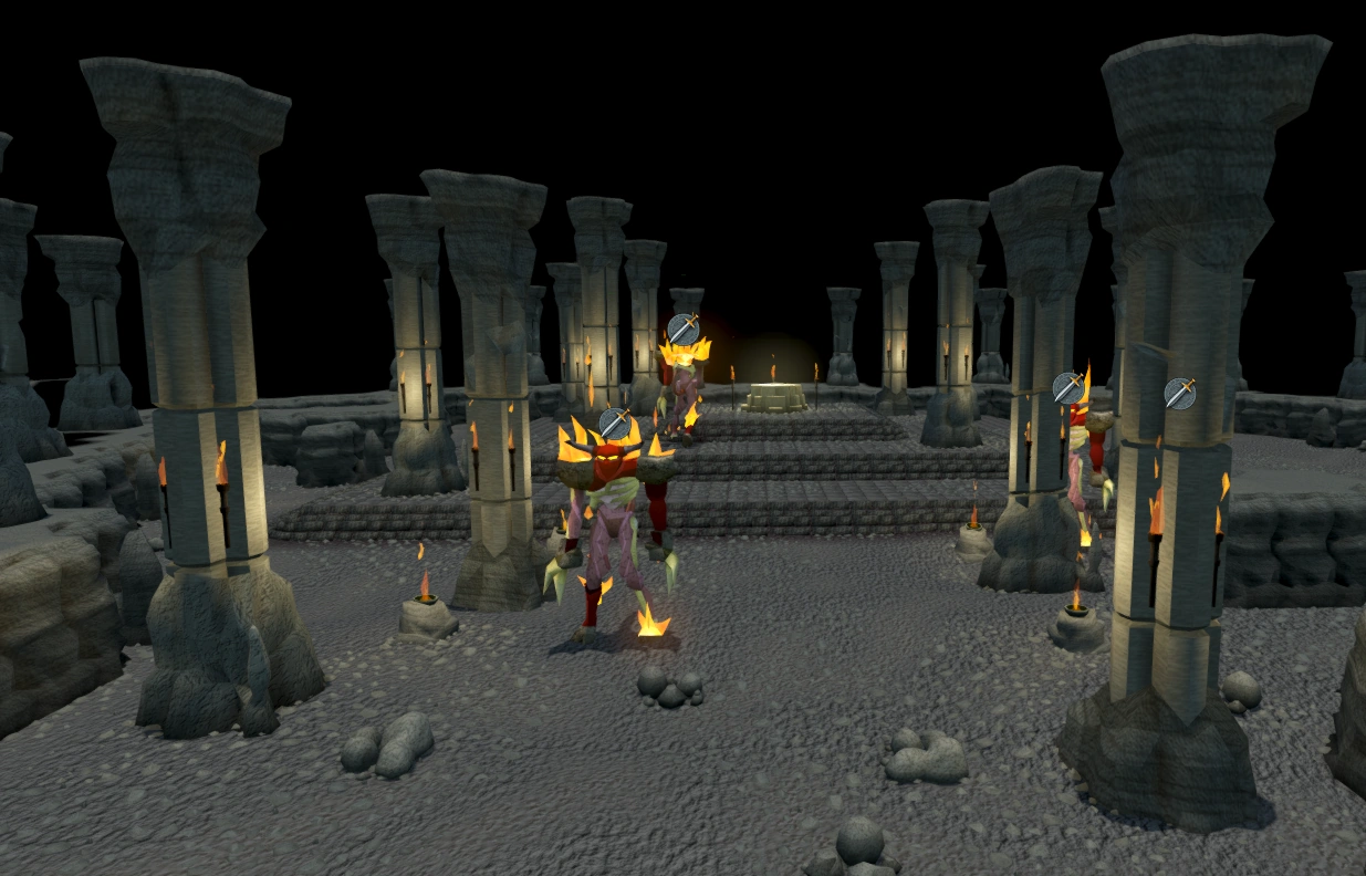 - When a player was at the entrance to the temple, the air key, water key, earth key and fire key could be seen floating in the blackness near the temple, easily visible on the minimap. These were removed in an update.