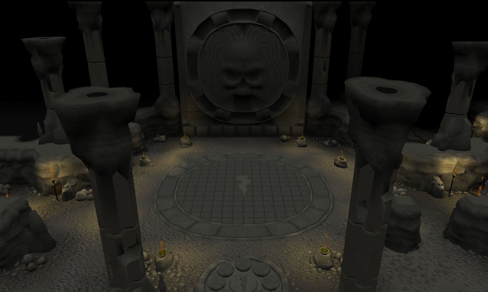 During the quest, the player, pretending to be Surok Magis in order to get past Movario and Darve, goes into the temple and must open an ancient huge door within this temple guarding the legendary Stone of Jas by solving a puzzle concerning Herblore.