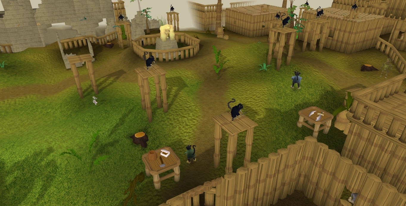 The Ape Atoll has the best training ground for medium level (70-75 is recommended to begin training here, unless using surefooted aura) Agility training (up to level 80, after that the Dorgesh-Kaan course is a better choice). With lower Agility levels, the failure rate on the obstacles here makes efficient training infeasible. A ninja greegree is required for access to the course. While players can bring cats with them to Ape Atoll, if they attempt the agility course with a cat out, they will receive a message saying "Your little friend can't make it over the obstacle ... so you pick it up" and their cat will be put in their inventory.