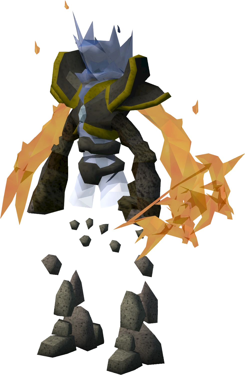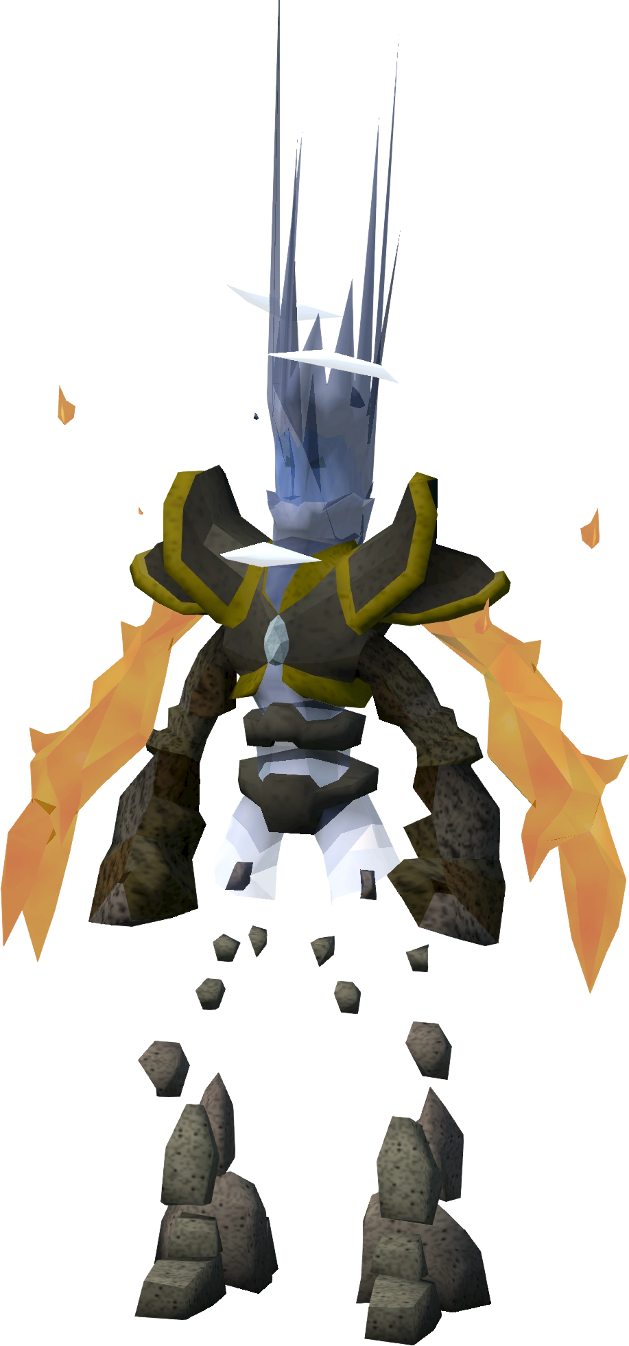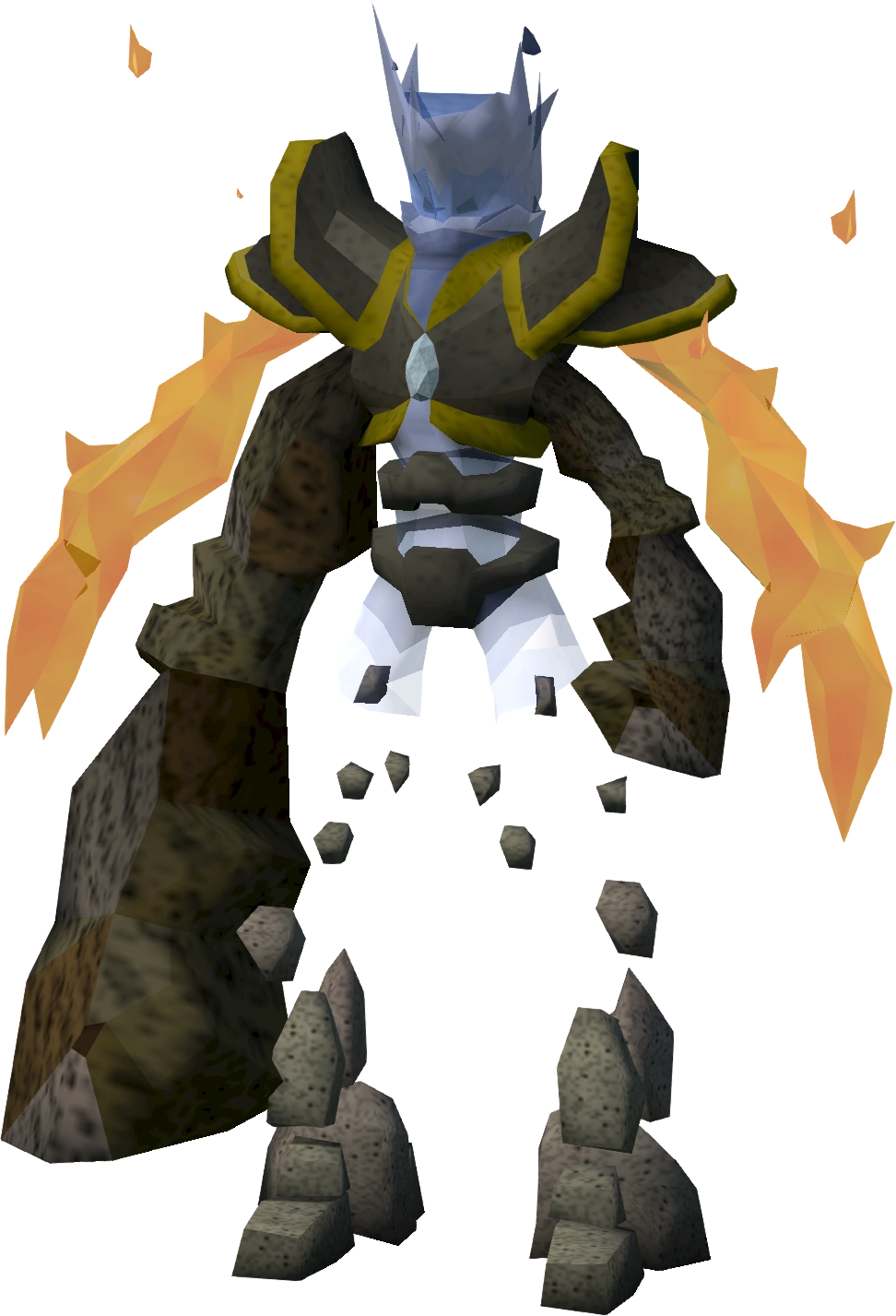 The Balance Elemental uses all attack styles, and changes appearance for each: A giant stone fist signifies that it is attacking with melee, a flaming bow ranged, and spikes of water protruding from its head mean magic attacks. It also uses a stat draining attack which is a rock-like missile.