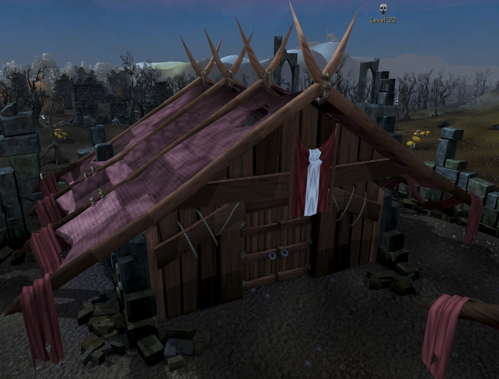 As the store is in the Wilderness, and players must be skulled in order to access the shop, players should not bring any items they are unwilling to lose. Fortunately, the cape merchant Neil is nearby, allowing players to quickly bank their purchased items. Players may alternatively teleport if they are unwilling to use his services, as the camp is below level 30 Wilderness.