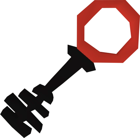 Black key crimson is a key and reward from the Shades of Mort'ton minigame. To obtain it, the player must kill either a riyl shade or a asyn shade and then burn its remains on a pyre. This is the best type of key players can get as a reward from a riyl shade. The key may be used to enter the Shade Catacombs and then open the correctly coloured chest. It will open a black-framed chest with a crimson lock. This type of key can only open doors up to black within the tombs.