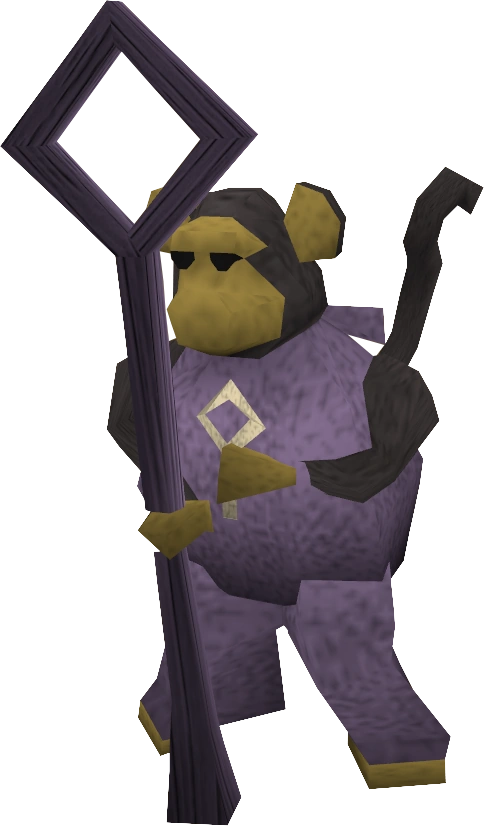 Bonzara is a mysterious, purple monkey. He's found inside of the gorilla statue (possibly of Marimbo) inside the Arena where you fought the Jungle demon during Monkey Madness. To get to Bonzara, you must find a trapdoor that leads to the bottom floor and go through the banana trees and enter the crack in the statue. Bonzara says that you'll meet again. If you defeat the Jungle demon and go down the trapdoor, the gnomes won't be on the platform anymore, if so, Bonzara offers a free teleport to the north-western part of Ape Atoll, just around some snakes, and spiders, so be prepared! It is recommended, though, if you do not have a Greegree, to Home teleport from the platform.