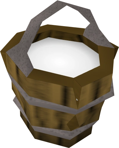Players can use a bucket on a dairy cow to gain a bucket of milk, or simply click on the dairy cow when they have at least one empty bucket in their inventory. Members can gain a bucket of milk from any type of larder in the kitchen of their player-owned houses. A bucket of milk spawns in a hut in the eastern part of Rellekka.