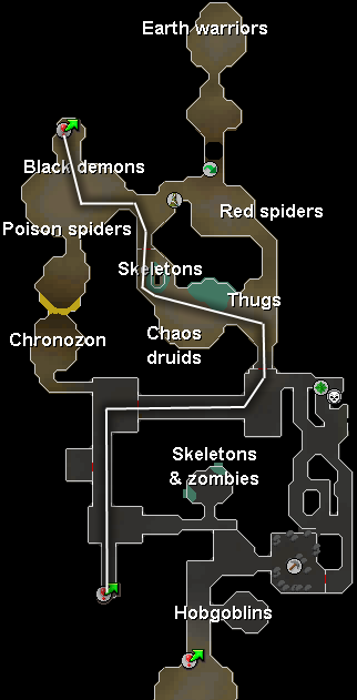 Bear in mind that running through the Edgeville dungeon places you in combat range of aggressive thugs, chaos druids, deadly red spiders, level 84 skeletons and black demons. The Air Obelisk is also located in the Wilderness, so do not take anything you are not prepared to lose.