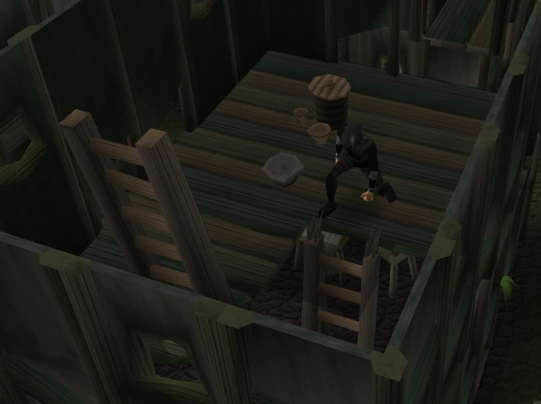 | Search the wall (to the west) to get the topmost part of a ladder. |