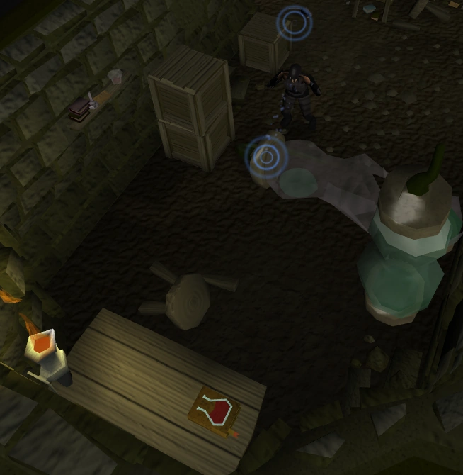 Open the door to the east and go down the stairs - you will find yourself in the laboratory. Search the broken rune case for some Telekinetic grab runes, and then use telekinetic grab on the Haemalchemy book on the table near the broken tube. It is too difficult to understand, however. Take the book back to Safalaan. He will be very happy and thankful and gives you a shortcut key and tell you to return to Veliaf Hurtz with a sealed message, as a last task. Go back to Burgh de Rott. If you decide to return to Burgh de Rott via the Meiyerditch, along the route there will be two doors with a key painted on them. The shortcut key unlocks these for faster travel (see Meiyerditch shortcut guide). Speak to Veliaf Hurtz in the basement of the pub once you reach Burgh de Rott to find out that Safalaan has promoted you to Myreque Private in the message.