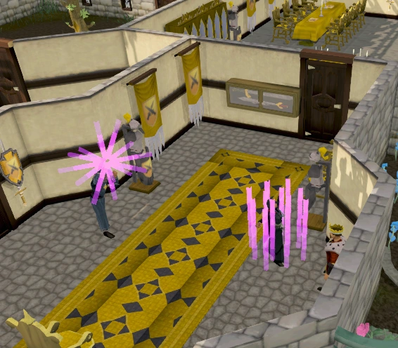 Go the south side of the castle and attempt to make another drawing. You will be spotted and Vanstrom Klause (level 82) will attack and, after around 3-5 turns, knock you out (but not kill you)! You won't be able to hit him back, as he will erect a blue-white shield every time you attack. While Vanstrom beats you up badly, he will not kill you. Wearing a Ring of Life at this stage will teleport you away as you near death, requiring you to come all the way back and repeat the step. Using Protect from Melee or Deflect Melee will stop most damage. When he knocks you out, a lady called Sarius Guile will save you.