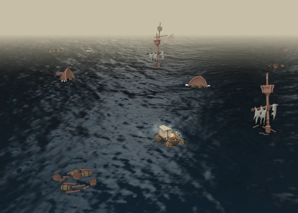 After returning to the Fishing Guild and speaking with Jones, he will take the party out to sea. The small vessel will arrive at the wreckage, and certain wrecks must be investigated to reveal parts of Thalassus's trail. This process is identical to the method of tracking various animals in Hunter. Instead of paw prints follow the trail of debris. Investigating the correct wreckage at the end of the debris will reveal a new debris trail.
