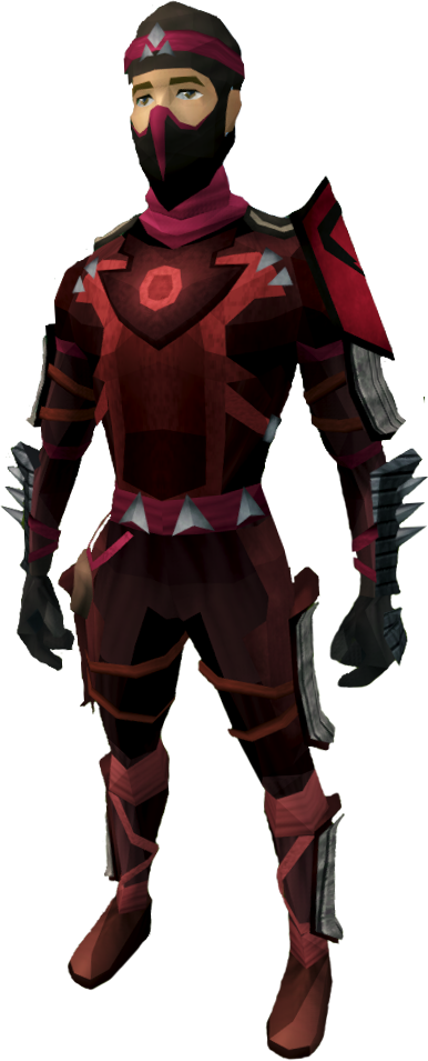 Death Lotus equipment is a set of degradable ranged equipment unlocked via player-owned ports. 85 Defence is required to wear the armour. 85 Ranged is required to wield the darts. The armour can be made at 90 Crafting and the darts can be made at 92 Fletching in the port's workshop. Boosts cannot be used. The material used to craft the armour is the trade good lacquer. The materials used to craft the darts are ascension shards and ancient bones.