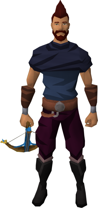 The demon slayer crossbow is a weapon with increased potency against demonic races. It is dropped by a demon boss, which will show up as part of a Demon Flash Mob at a number of places every full hour, and it is dropped by the Kal'gerion demons in the Kal'gerion dungeon. Although the crossbow is supposedly level 60 equipment, when used against non-demons it has the accuracy of a level 57 weapon.