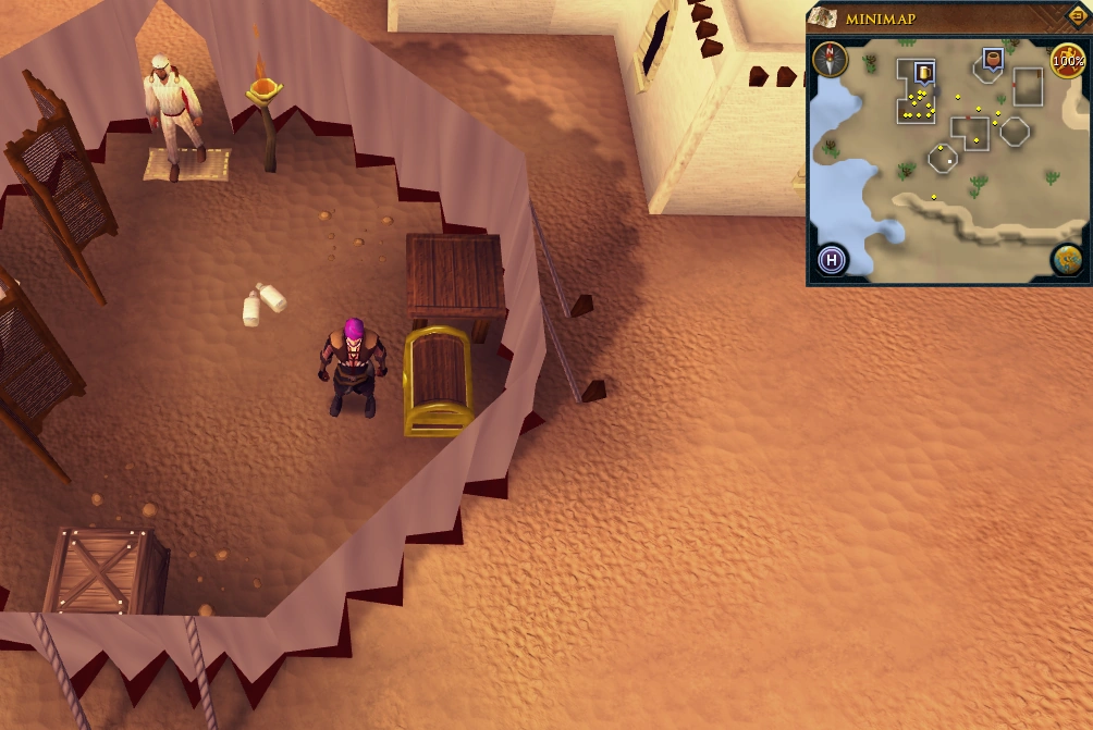 Asgarnia requests your help in locating this wealth, and agrees to split the treasure evenly. He wants you to dig around for information down at the Bandit Camp, while he searches for clues amongst the Bedabin nomads.