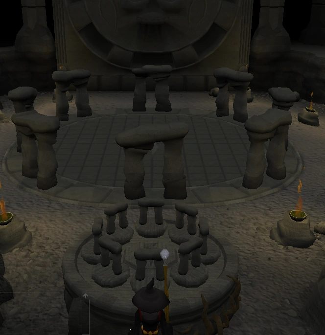 A Dolmen is an item used during While Guthix Sleeps. When mixing the corresponding potion's ingredients on a statue in the Ancient Guthix Temple, you will receive one of the eight dolmens. When placing a dolmen on the stone table in the temple, a large dolmen will rise from the huge stone circle in the middle of the room. After all eight dolmens are placed on the table, the stone circle will raise up and unlock the door to the Stone of Jas. Oddly, the Dolmens on the stone circle disappear afterwards.