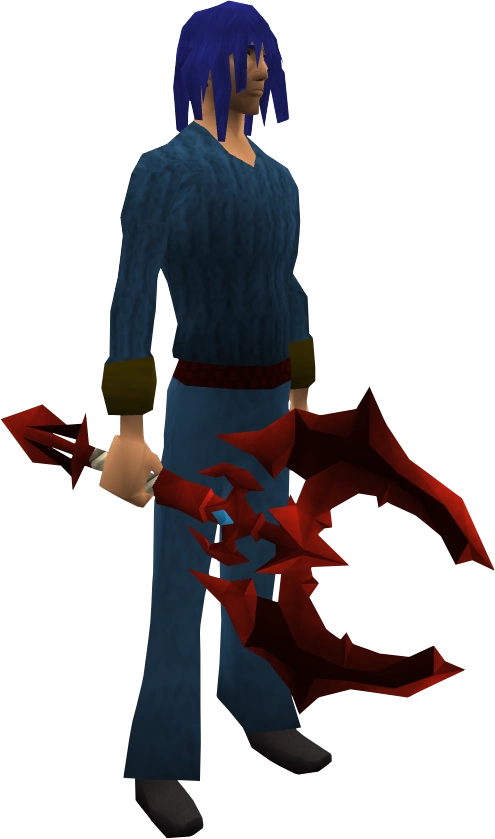 For a long time this weapon had the highest damage rating for all one-handed weapons, surpassed by Korasi's sword , Chaotic equipment , Attuned crystal dagger , Drygore weaponry , and Khopesh of Tumeken . It's worth noting, however, that all these degrade (with the exception of Korasi's sword).