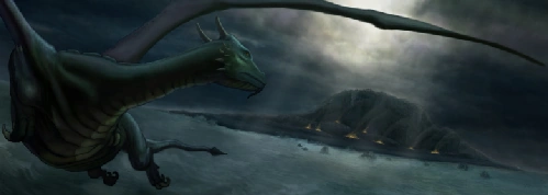 During the first century of the Fifth Age, Crandor was an important location in Gielinor's Southern Sea, with a well-established colony and shipping routes all over the world. In year 139 of the Fifth Age, a Crandorian adventurer discovered and ventured into a deep dungeon at the summit of the hill which made up the island. Upon entering, he awoke Elvarg from her slumber and enraged her, causing her to rise from the mountain and annihilate the human community on Crandor, torching the island in the process.