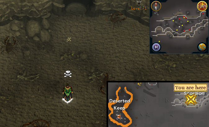 | 11. Scorpion Pit | Teleport lever in Ardougne or Edgeville, go east towards the Scorpion Pit (beware of the Chaos Elemental which resides nearby) | Level 53 Wilderness, middle of the Scorpion Pit east of the magic axe hut | 24° 30' N 25° 0' E |