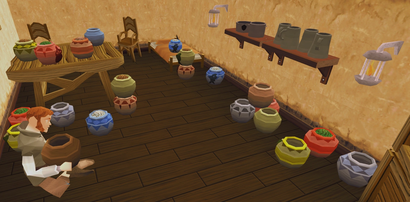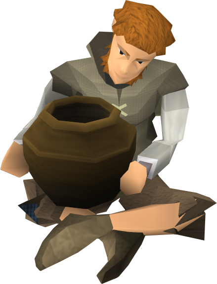 Ernie is a man who explains the purpose of urns to players. He can be found by climbing up the ladder in a building directly east of Aubury's Rune Shop in south-eastern Varrock; the building contains two potter's wheels and a pottery oven on the ground floor.