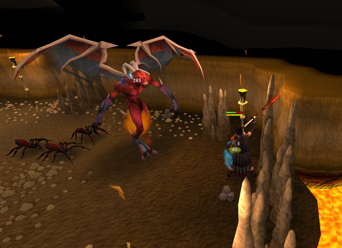 You may make use of the safespot in the north-west side of the cave, behind the space between the stalagmite and the torch. You may have to kill the aggressive poison spiders, but they can't attack you once you are in position.