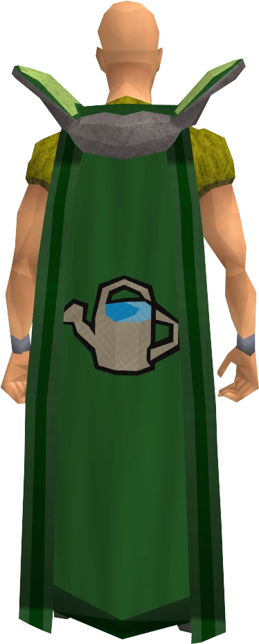 The Farming cape is the Cape of Accomplishment for the Farming skill. It can be purchased for 99,000 coins alongside the Farming hood from Martin the Master Gardener at Draynor Village by players who have achieved level 99 in Farming.
