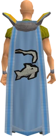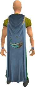 The Fishing cape is the Cape of Accomplishment for the Fishing skill. It can be purchased for 99,000 coins alongside the Fishing hood from the Master fisher standing inside the Fishing Guild by players who have achieved level 99 in Fishing.