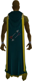 - The emote for this cape was updated on 25 May 2010, adding some particle effects and changing the way the player holds the bow at the end of the emote.
