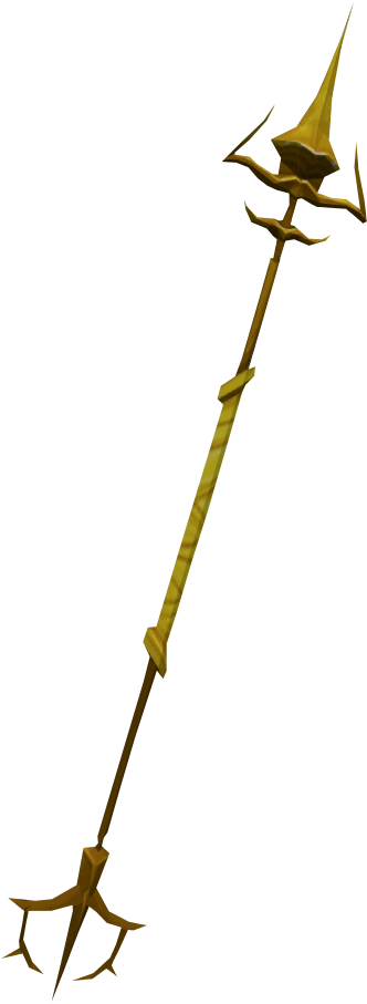 Golden chaotic spear is the golden variant of the chaotic spear, a two-handed melee golden chaotic weapon which requires levels 80 Attack and Dungeoneering to wield.