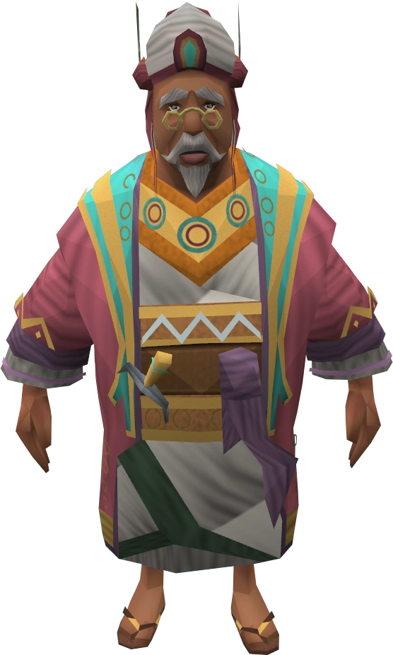 Grand Vizier Hassan is a high-ranking official of the desert nation of Al Kharid, a large city on the northernmost fringe of the vast Kharidian Desert. He is also a taskmaster for the easy Desert achievements.