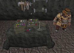 The stall respawns at the same rate as the Ardougne Gem Stall. Players wishing to steal solely from gem stalls, such as for a Daily Challenge, may easily travel from one stall to the other and back before the gems have respawned, thus allowing them to steal twice as many gems in a given time period.