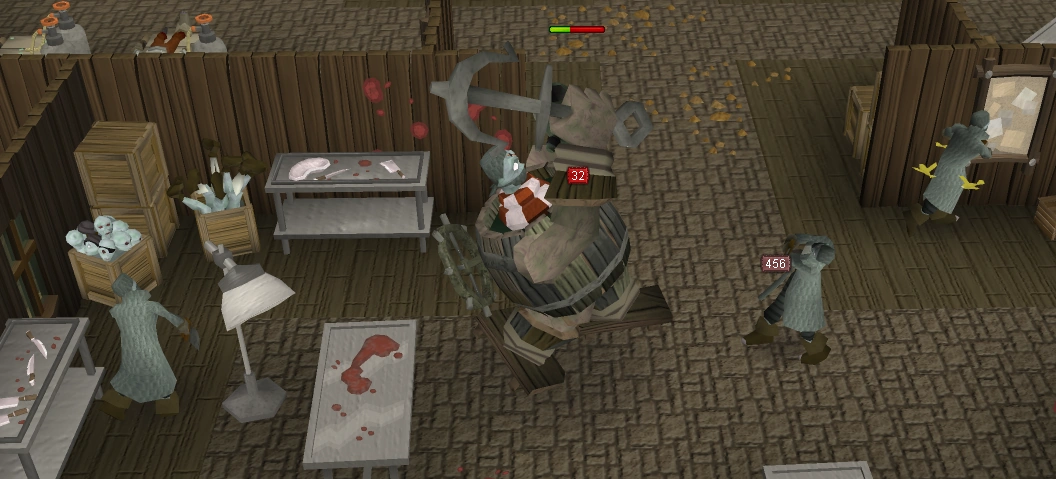 A player fighting a grimtern as a barrelchest.