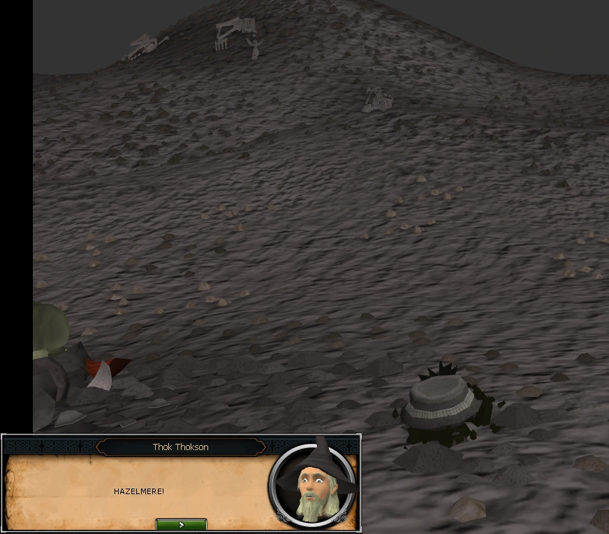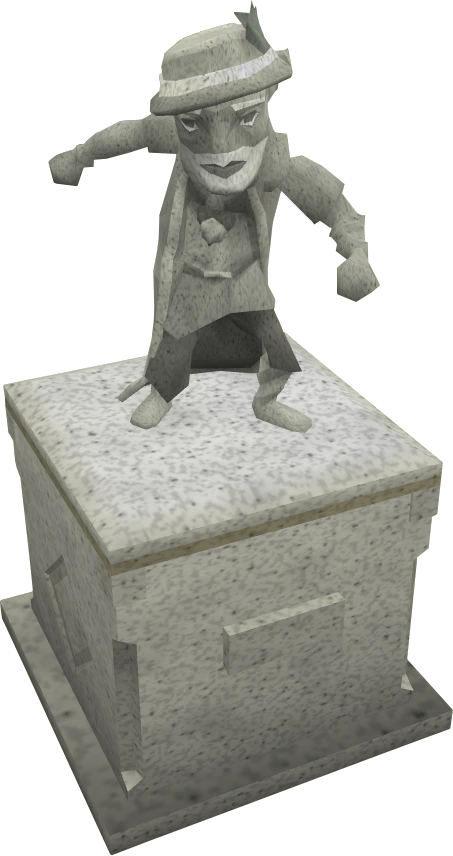 The other monument can be found in the far South-west of the Tree Gnome Stronghold, near the terrorbird fields and local fishing pond. Hazelmere is shown in the same position as his monument in Falador, although it is given a different meaning here. Hazelmere can be seen reaching forward in the direction of Argento's remains, apparently calling to his fallen companion.