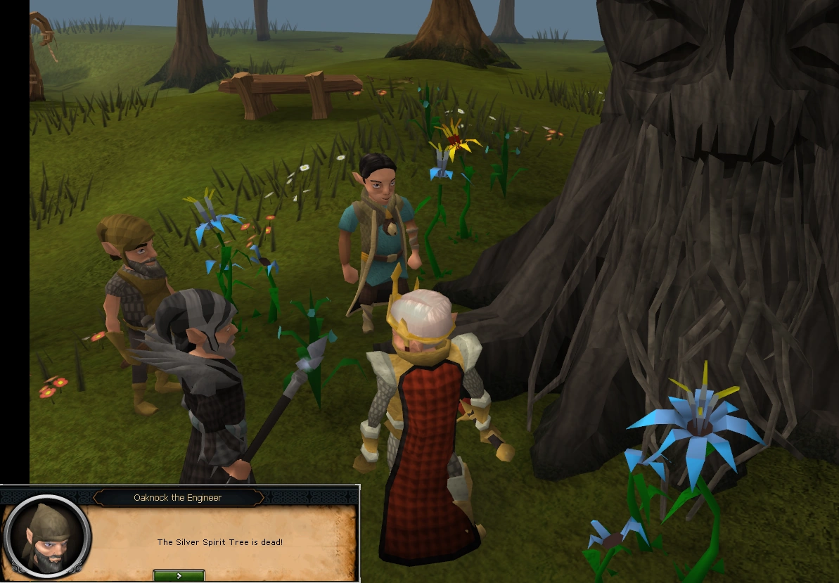 After numerous failed attempts to coax the Spirit Tree out of his waking coma, Hazelmere came to the conclusion that Argento was the victim of some sort of attack. He suspected some type of illusionary magic had been used to hide something, and so he went to fellow advisor Oaknock, who had recently built a machine that could dispel gnomish magicks.