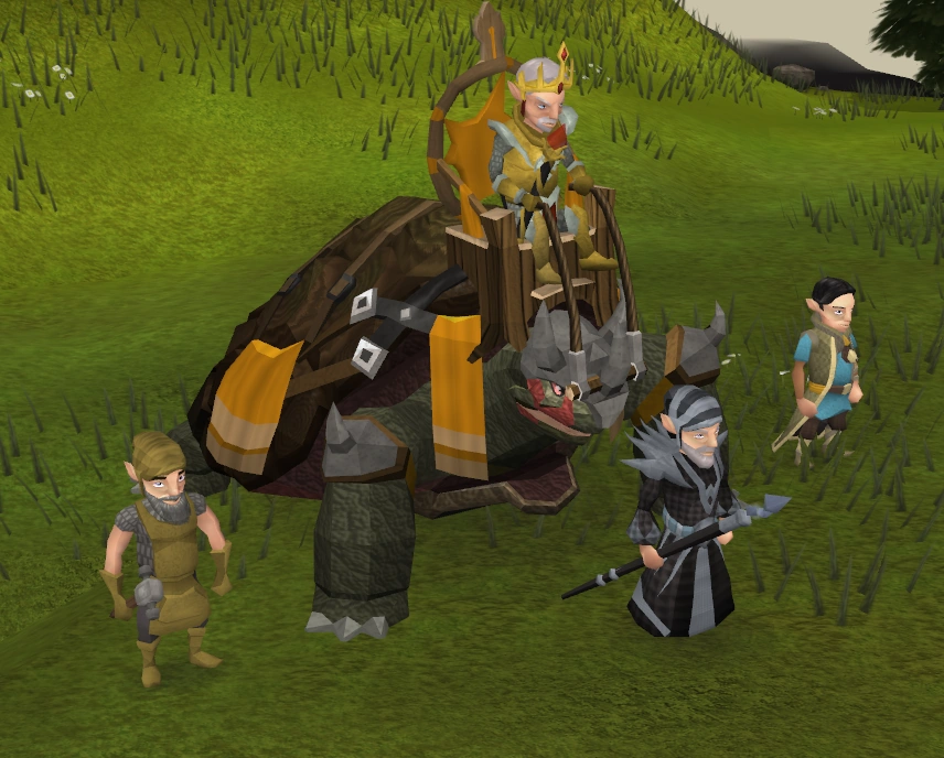 Hazelmere was amongst the select few gnomish leaders to stand at the head of the army before the battle again. Due to his position as advisor, he stood alongside King Healthorg mounted on the tortoise Mibbiwocket, Glouphrie, and Oaknock. Although he was prepared for open combat, the illusionist Glouphrie managed to circumvent a near sure-loss for the Gnome Empire, making it appear that an army of battle tortoises was present while in fact Mibbiwocket was alone. The Thorobshuun fled the battle and gradually died out in Kandarin. The battle ultimately resulted in no casualties and would usher in the Golden Age of the Gnomes. Hazelmere would remain a key advisor during this period.