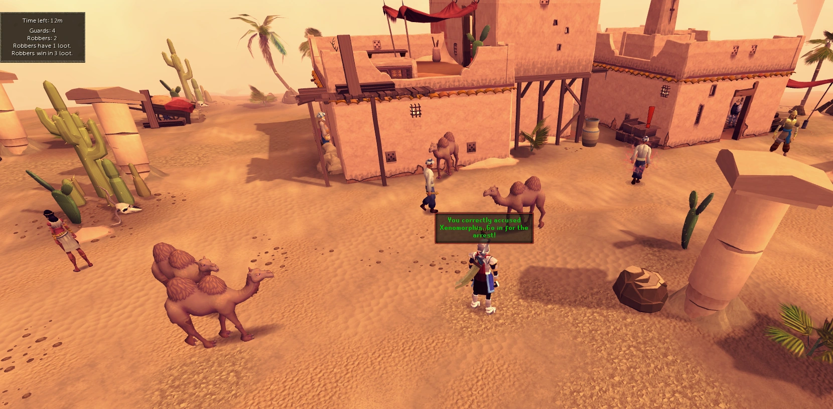 - Guards can quickly change their accusation, whilst accusing an NPC, by clicking another NPC before their accusation registers. This is shown when the guard says, "No wait... You!"