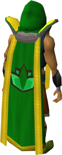The Herblore cape (t) is the Cape of Accomplishment for the Herblore skill. It can be purchased for 99,000 coins alongside the Herblore hood from Kaqemeex at Taverley or Elen Anterth in Prifddinas by players who have achieved level 99 in the skill. Herblore capes are dark green in colour, and have a yellow-gold trim if the player has more than one level 99 skill. Herblore capes are currently the tenth most uncommon skillcape seen by players due to the high cost of training Herblore.