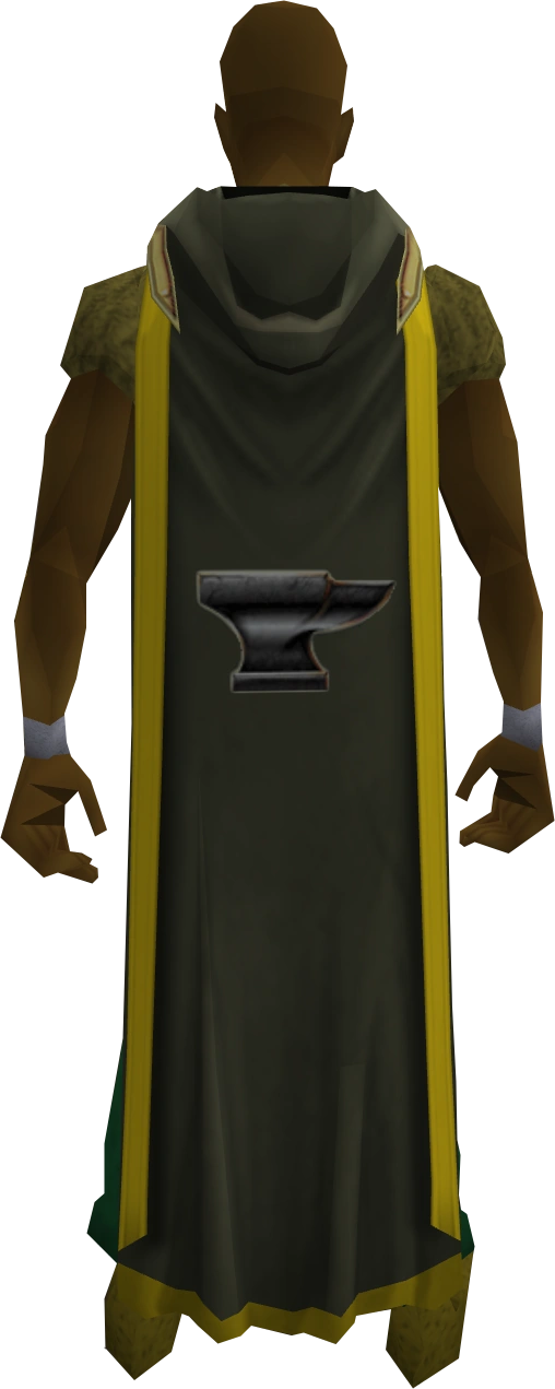 The hooded smithing cape (t) is the Cape of Accomplishment for the Smithing skill. It can be purchased for 99,000 coins alongside the Smithing hood from Thurgo south of Port Sarim by players who have achieved level 99 Smithing. Smithing capes are grey in colour, and have a gold trim if the player has more than one level 99 skill. Getting 99 Smithing is considered expensive depending on the methods used.