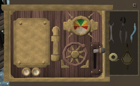 Open the door to the east with the swordfish (You will receive 100 Thieving experience). Now, Inspect the Engine panel.