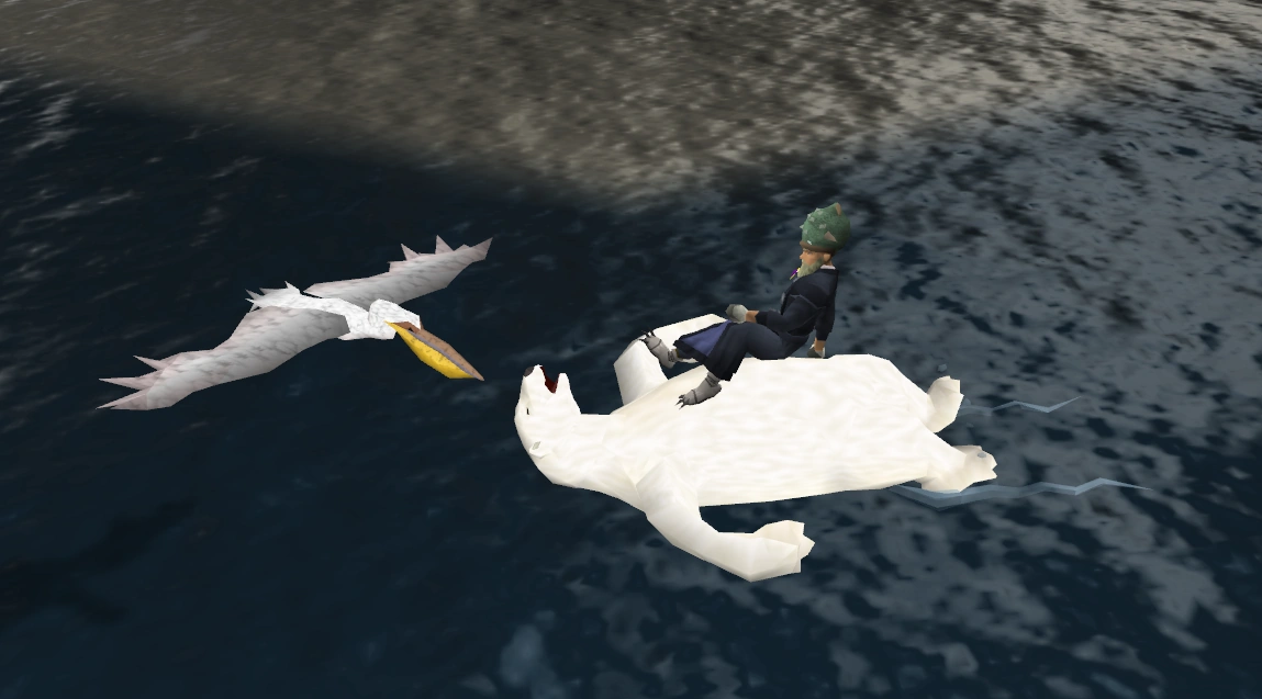 Talk to the polar bear, named Chuck. After realising that you have seen through his disguise, he informs you that he is a PBJ agent working with Larry and monitoring you for a breakthrough. He takes you off the island and back to the zoo. You see a cutscene with you floating on Chuck with a pelican flying close by. You then appear outside of the polar bear cage in the zoo.