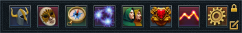 The ribbon is the main bar where other interfaces can be opened up by the player. The buttons it contains are listed below: