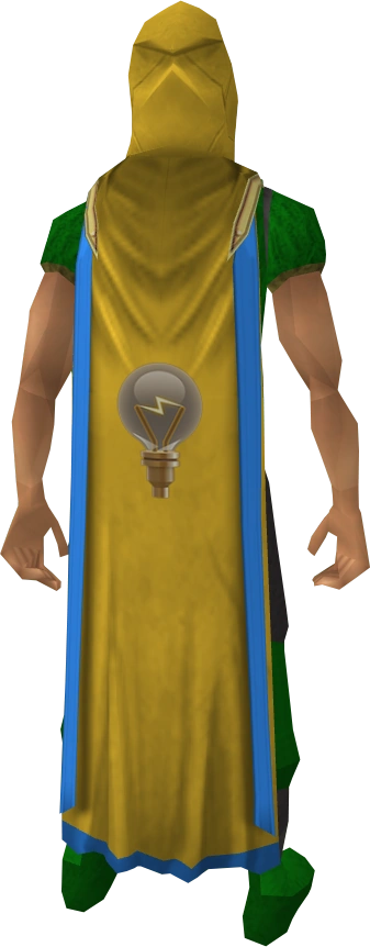 The Invention cape (t) is the trimmed Cape of Accomplishment for the Invention skill. It is the trimmed version of the Invention cape. It can be purchased for 99,000 coins alongside the Invention hood from Doc in the Invention Guild or Elen Anterth in Prifddinas by players who have achieved level 99 in Invention and also have one other level 99 skill.