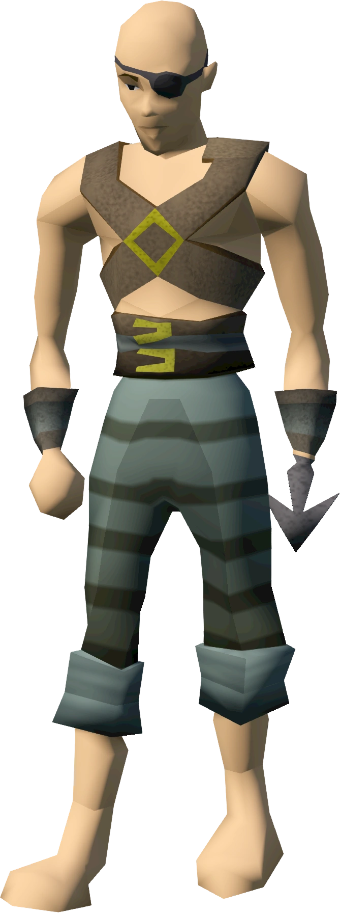 He is spoken to by players for the "Long Drop", where he activates a trapdoor to send the player tumbling down into his basement for secret meetings between prominent pirates. Once Pieces of Hate has been completed, he will not give the "Long Drop" to players, claiming that they have had "too much".