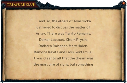 The list of elders is an item used during the Defender of Varrock quest. The list may be used to seek out descendants of ancient residents of Varrock, and can be found by searching the Scrolls on the library floor at the Varrock Palace.