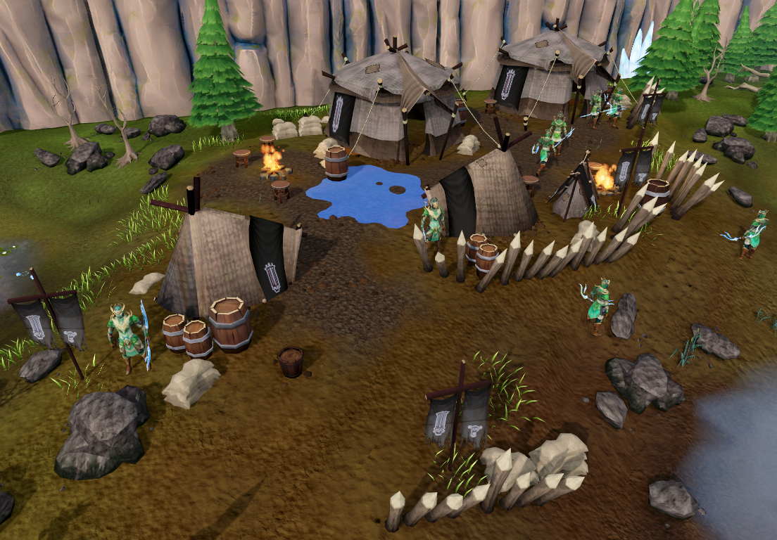 With their kingdom destroyed, the surviving Cadarn elves were forced to return to Isafdar, where they would rebel against the Iorwerth Clan and attempt to liberate Prifddinas.[13] The Iorwerth Clan subdued its opponents with relative ease, forcing them to scatter and live in refugee camps across Isafdar, which would systematically be found and annihilated over time. The forest itself would be patrolled by Iorwerth elves and infested with dangerous traps to eliminate all resistance.