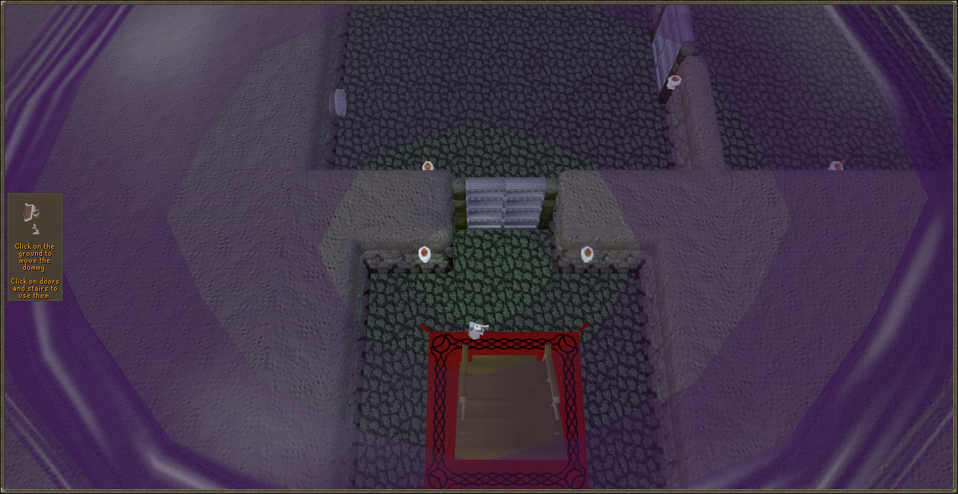Deactivate all the traps by walking on them and then return to the surface. You can attempt to use the stairs in the last room, which will cause The Wise Old Man to offer to return the dummy immediately. Alternatively, you can choose to walk it back through the rooms yourself and back up the first set of stairs. You can now safely enter the dungeon and fight your way to Zenevivia.