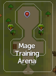 The Mage Training Arena is an area and its eponymous minigame that focuses on the magic skill. It is north of the Duel Arena and south of the Exam Centre. Using various spells, players earn pizazz points in different activities, which they can use to buy items in a shop on the top floor of the arena. An entrance guardian welcomes visitors to the training arena. You must provide your own runes for the spells.