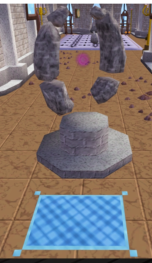 The Mage Training Arena offers four rooms for the player to practice casting Alchemy, Enchantment, and Telekinetic Grab spells, and Creature Graveyard. In addition to Pizazz points, the player earns coins and runes in the activities. Players must acquire the appropriate number of Pizazz points in each of the four rooms to buy items from the Rewards Guardian.